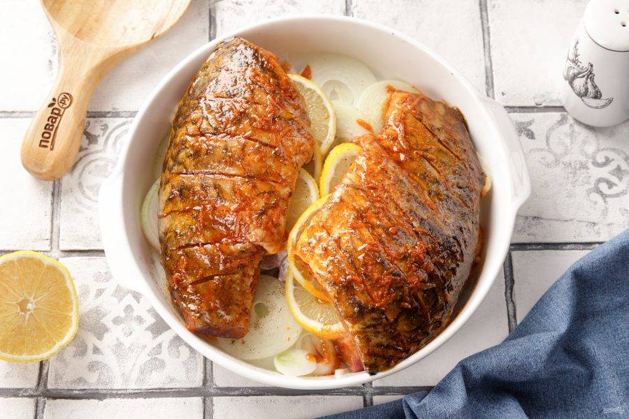 Смажьте карасей ароматным маринадом и запекайте в духовке при температуре 200 градусов около 25-30 минут.