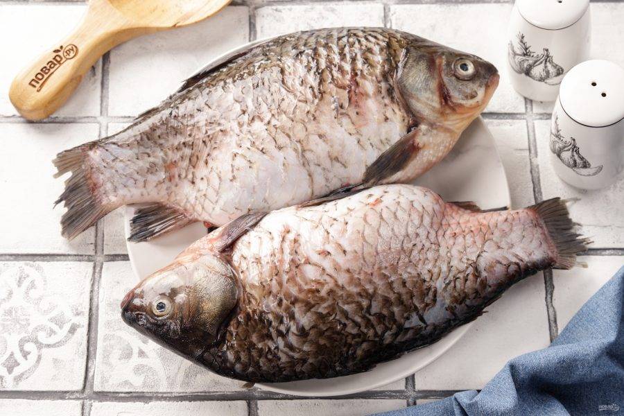 Обязательно очистите карася перед приготовлением от чешуи. После чего промойте.