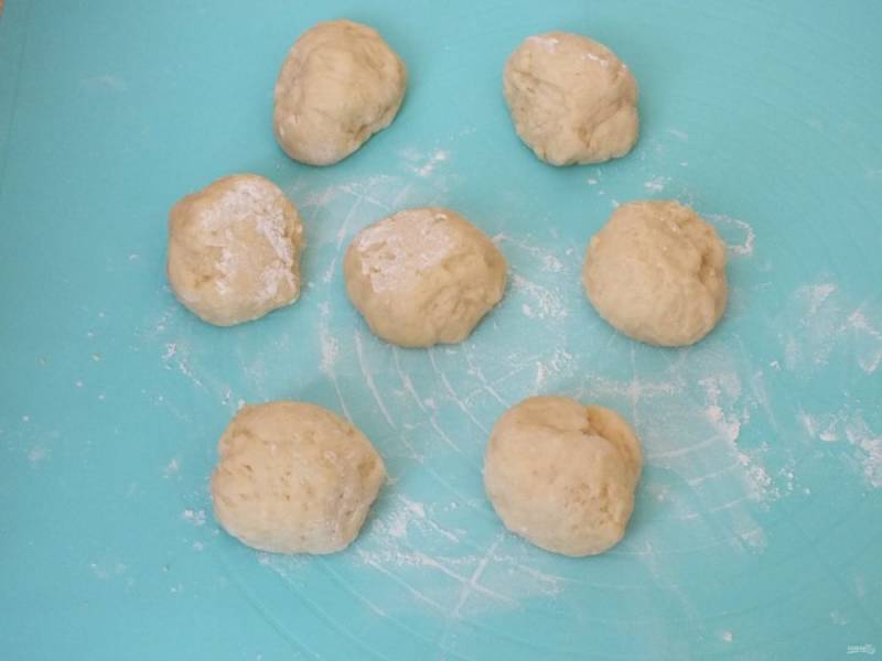 Разделите тесто на 7 частей. В среднем вес одной части 70 грамм.