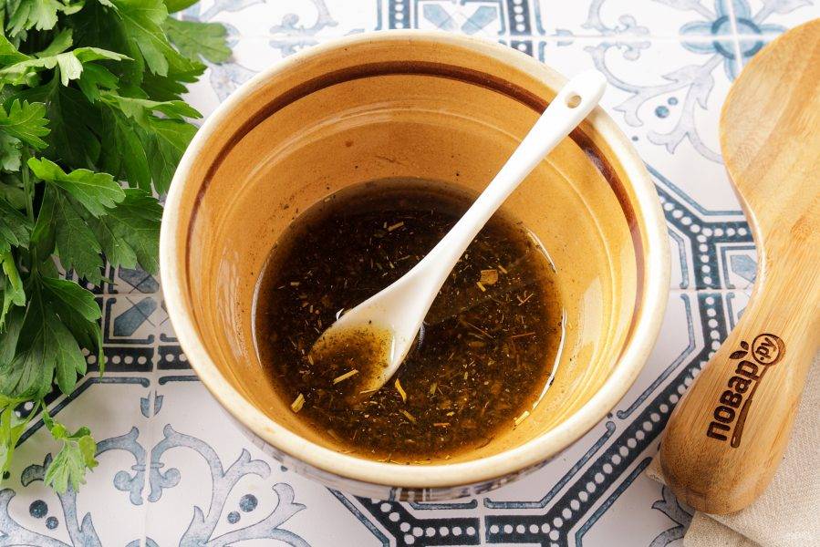 В глубокой миске соедините оливковое масло, соевый соус, специи, соль и перец по вкусу. Маринад готов.