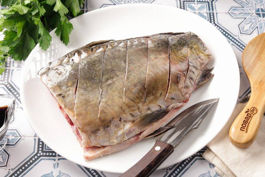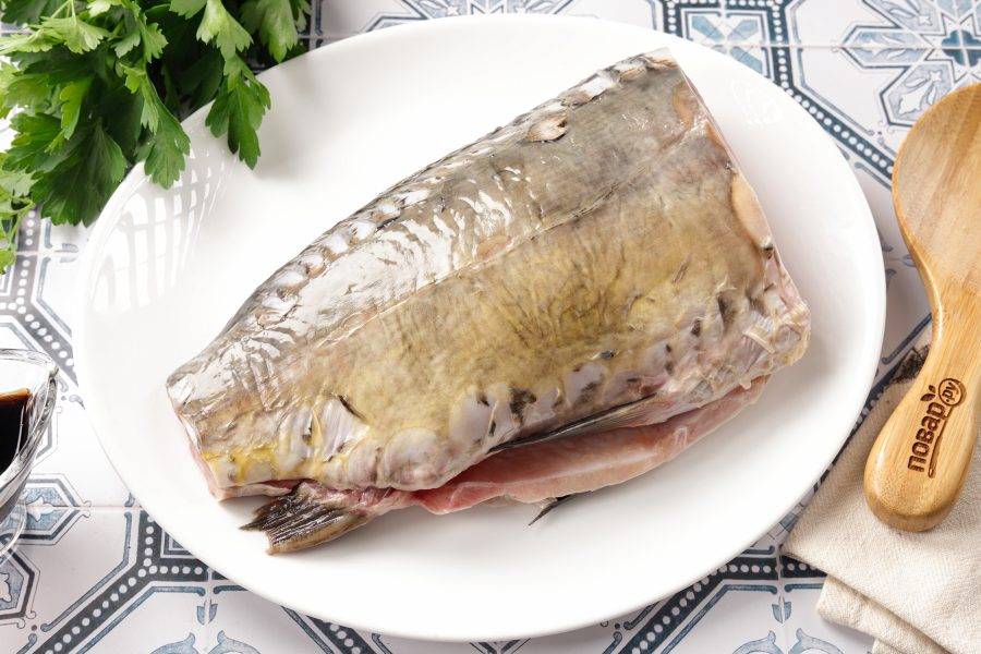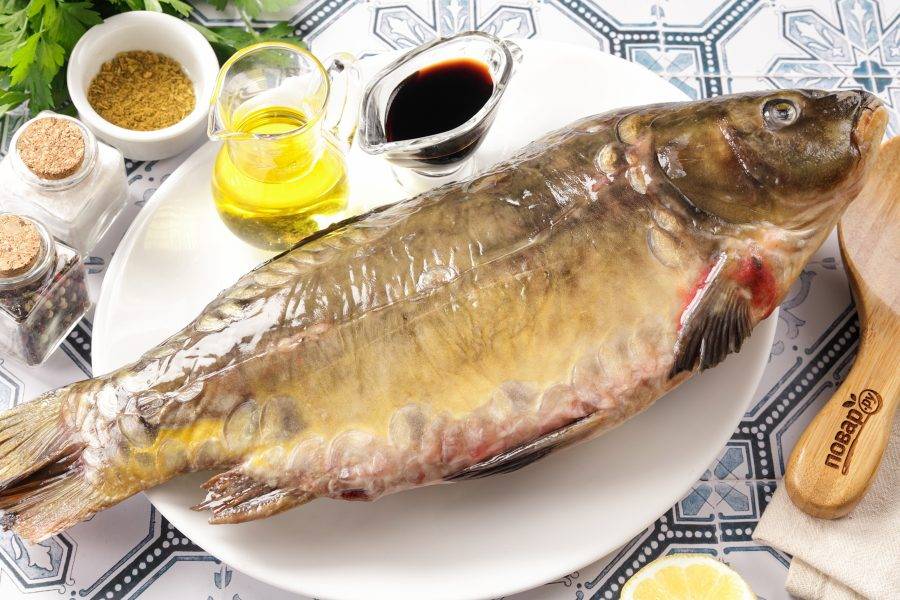 Приготовить карпа на гриле можно разными способами. Для этого рецепта лучше взять зеркального карпа, так как его легче чистить от чешуи, а кожа останется целой.