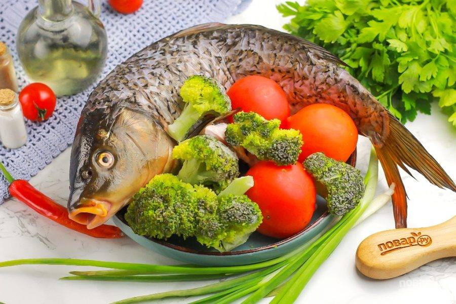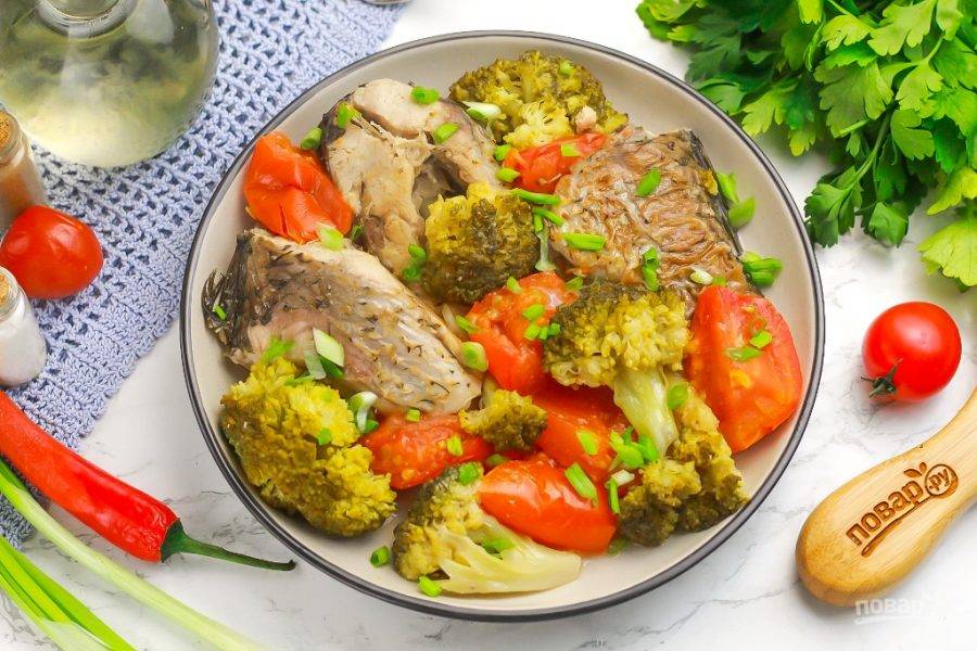 Карп, тушенный с овощами