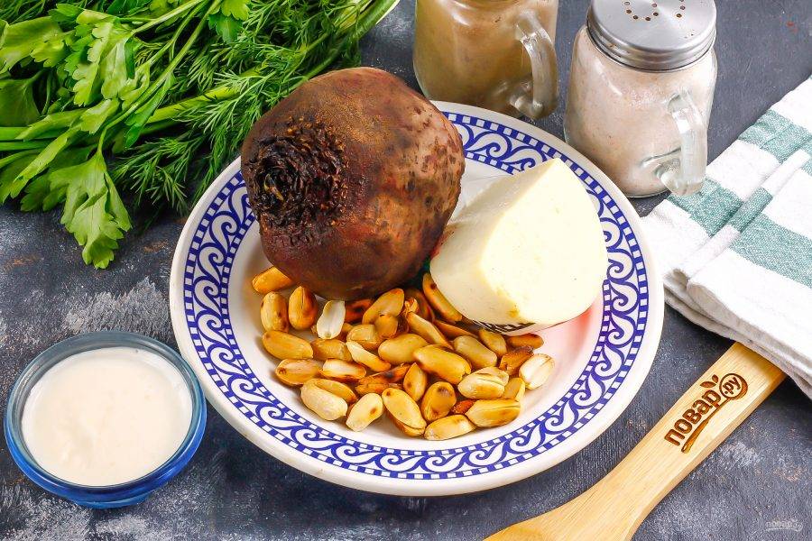 Подготовьте указанные ингредиенты. Свеклу заранее отварите или запеките примерно 30-40 минут, а после остудите в ледяной воде, так как карпаччо готовится только из холодных продуктов.