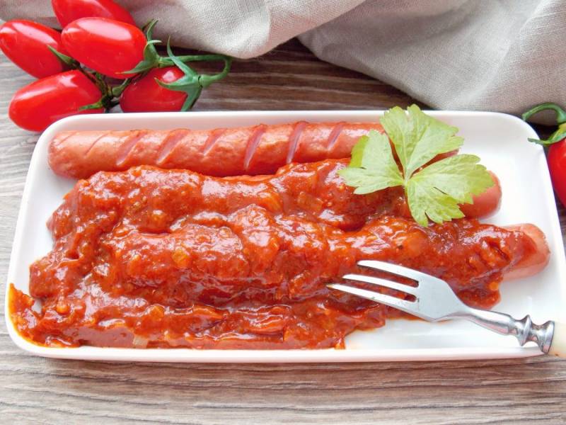Карривурст — это оригинальный, острый фастфуд, который был придуман в 1949 году в Германии и состоит из кетчупа, карри, вустерского соуса и обжаренных сосисок.