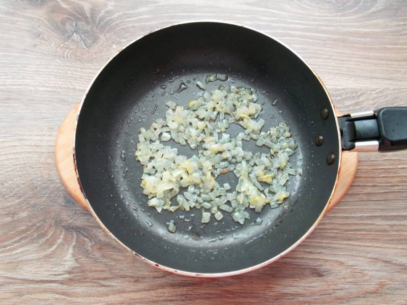 Лук мелко порежьте и обжарьте его на горячей сковороде после сосисок в течение 5-7 минут до мягкости.