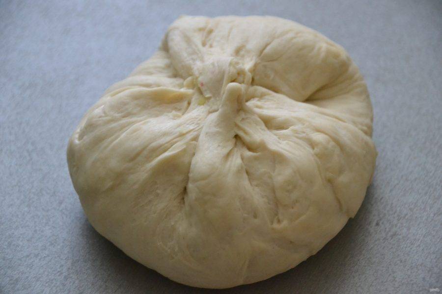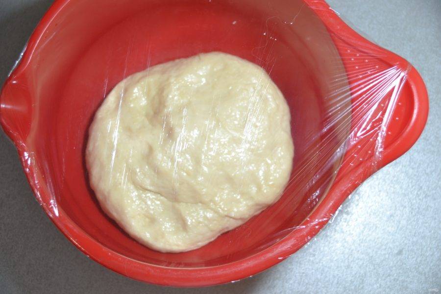 Готовое к работе тесто должно увеличиться минимум в полтора раза, разделите его на три равные части.