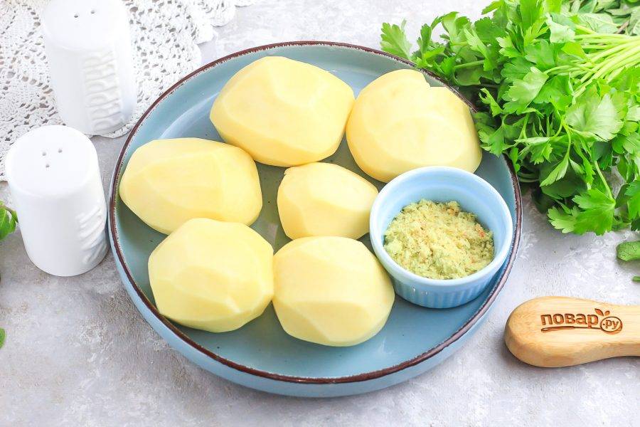 Подготовьте указанные ингредиенты. Картофель очистите от кожуры и промойте в воде.