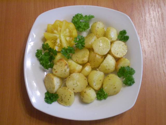 Ароматный картофель с хрустящей корочкой и нежной мякотью внутри. Прекрасный гарнир к рыбным или мясным блюдам. Подавайте со свежими овощами и зеленью. Соусы приветствуются.