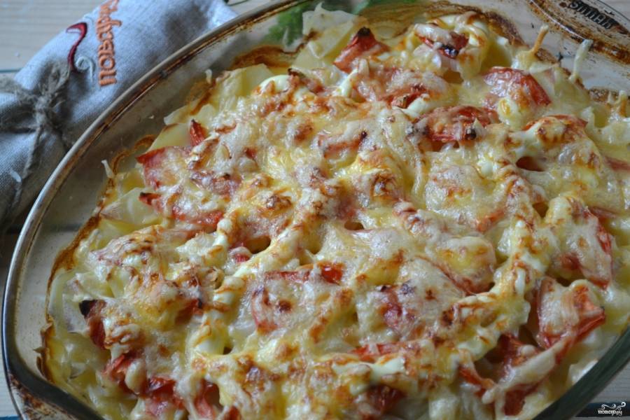 Это блюдо в моей семье называют картофельной запеканкой. Готовлю я ее по-разному, иногда добавляю помидоры, иногда грибы, иногда мясо или колбасу. Но неотъемлемой является ароматная сырная корочка.