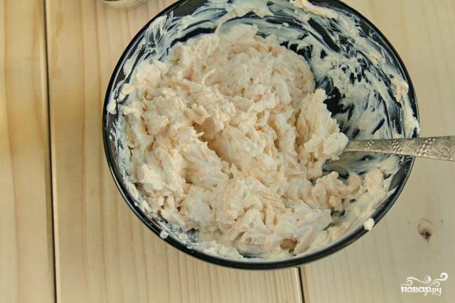Натираем на крупной терке сыр и смешиваем со сметаной. Можно добавить порезанную или сухую зелень.