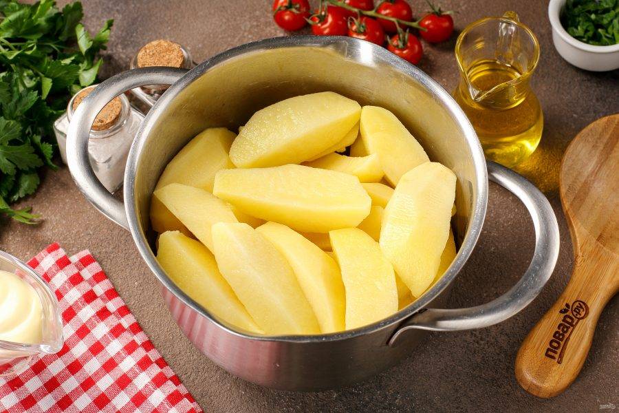 Подготовьте все ингредиенты. Для блюда понадобится 800 грамм уже очищенного картофеля.