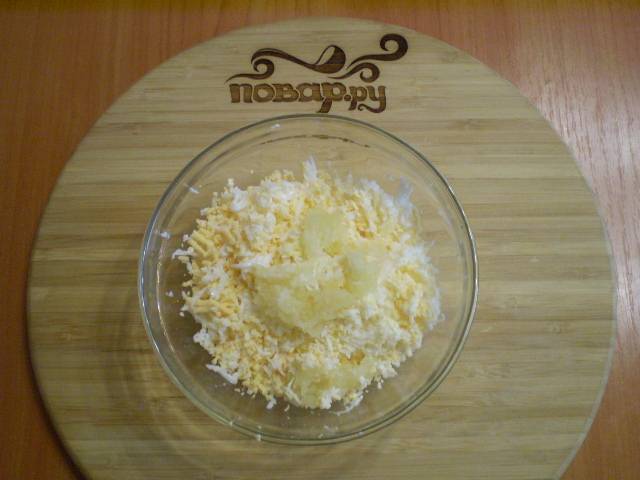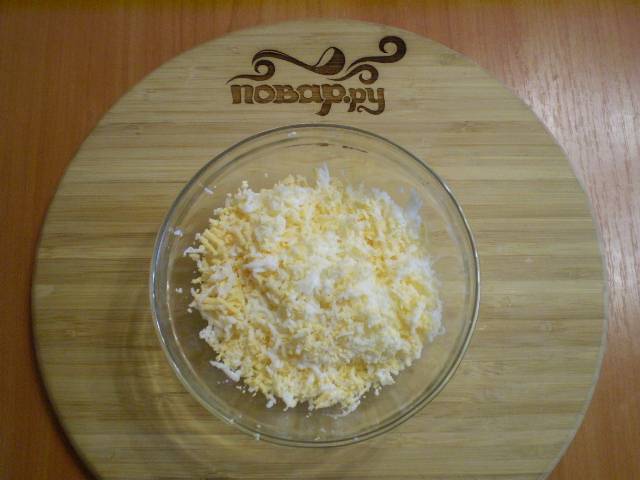 3. Готовим соус. Трем яйца на самой мелкой терке.
