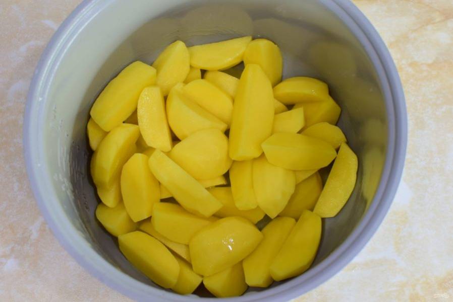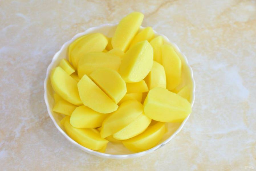 Затем нарежьте картофель на 2-4 части.