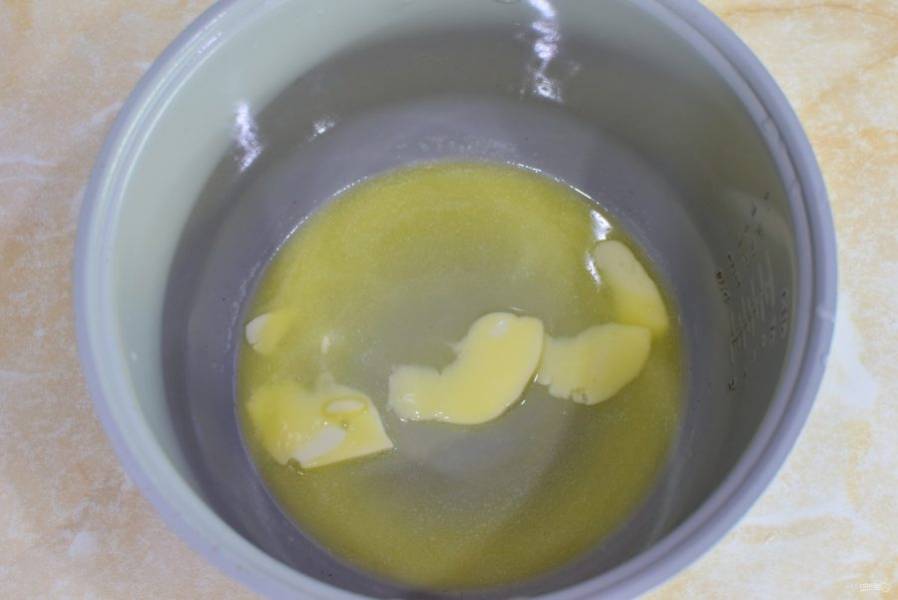 В чашу скороварки выложите подтопленное сливочное масло.