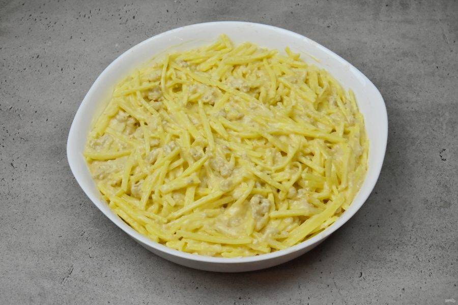 Сырную массу хорошо перемешайте и соедините с картофельной соломкой.