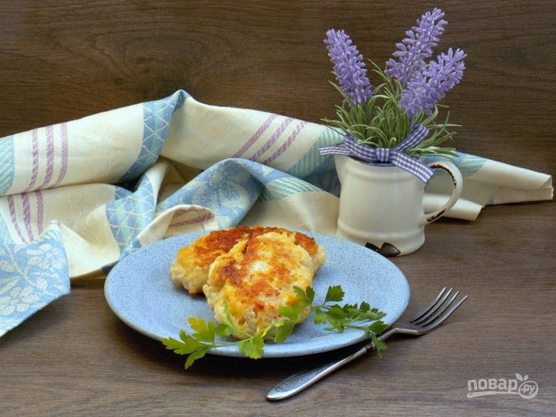 Закройте крышкой и обжарьте с двух сторон до золотистой корочки. Добавьте в сковороду немного воды, после того как котлеты станут плотными. Жарьте под крышкой на среднем огне до готовности.