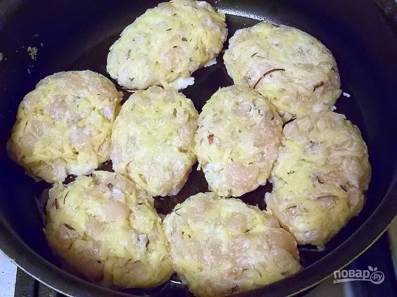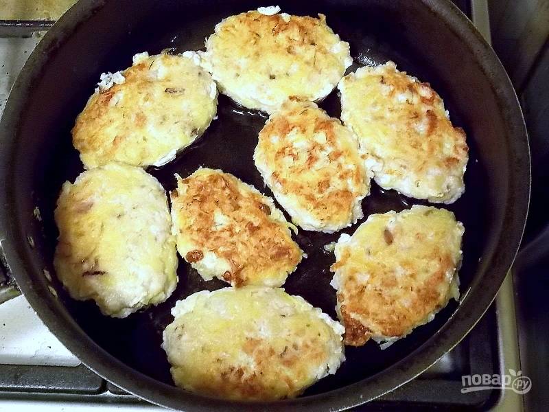 Нагрейте в сковородке растительное масло. Отжимая массу руками, сформируйте из массы котлеты. Положите на сковороду и немного прижмите.
