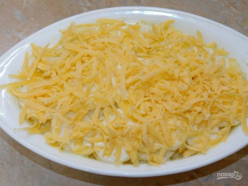 Посыпьте тертым сыром и поставьте в духовку при 200С на 40-50 минут.