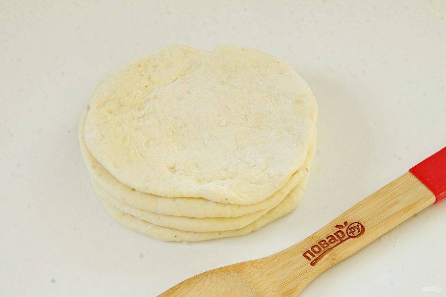Раскатайте лепешки снова в пласт, толщиной около 5 мм и вырежьте фигурками печенье.