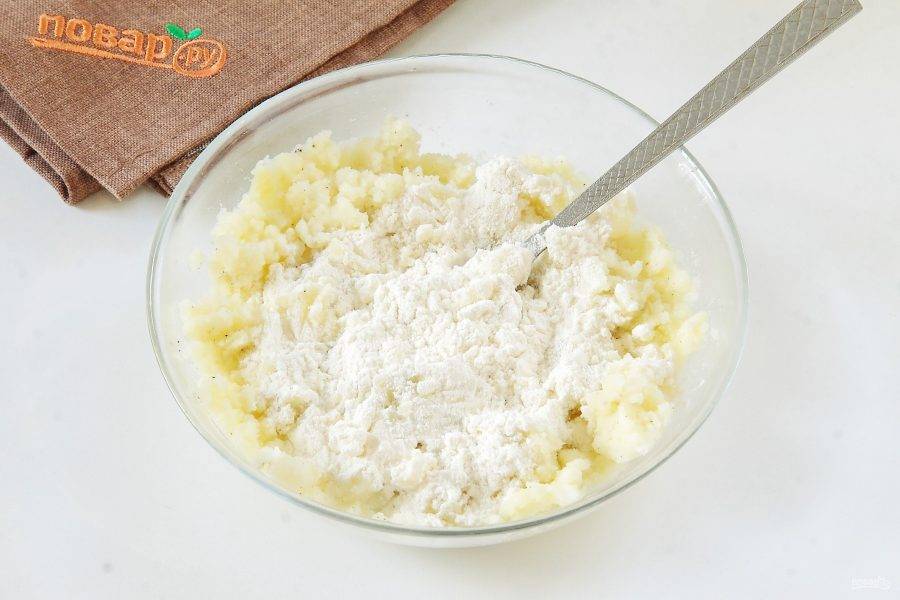 Подготовьте все ингредиенты. Картофель отварите заранее и превратите в пюре или используйте остатки с ужина.