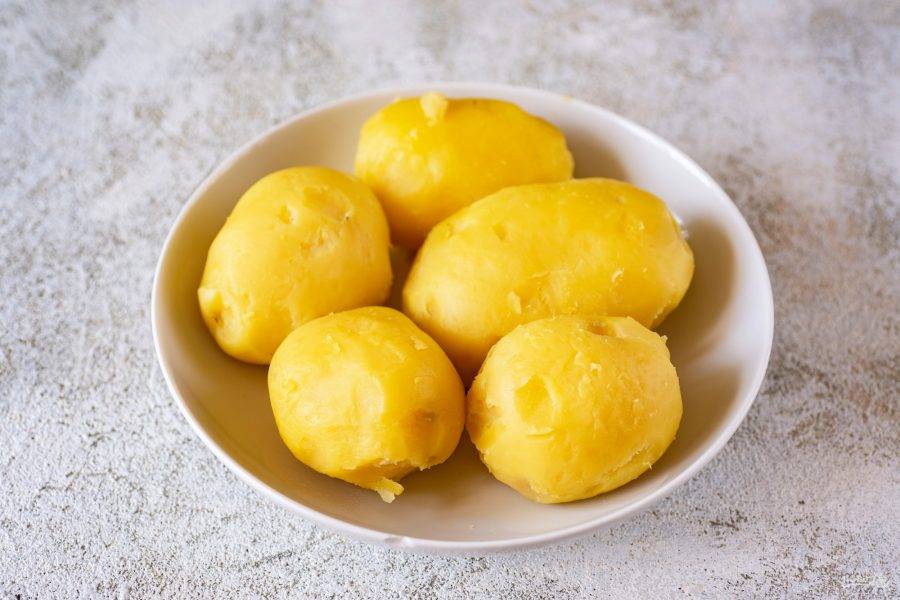 Отваренный картофель охладите и почистите от кожуры.