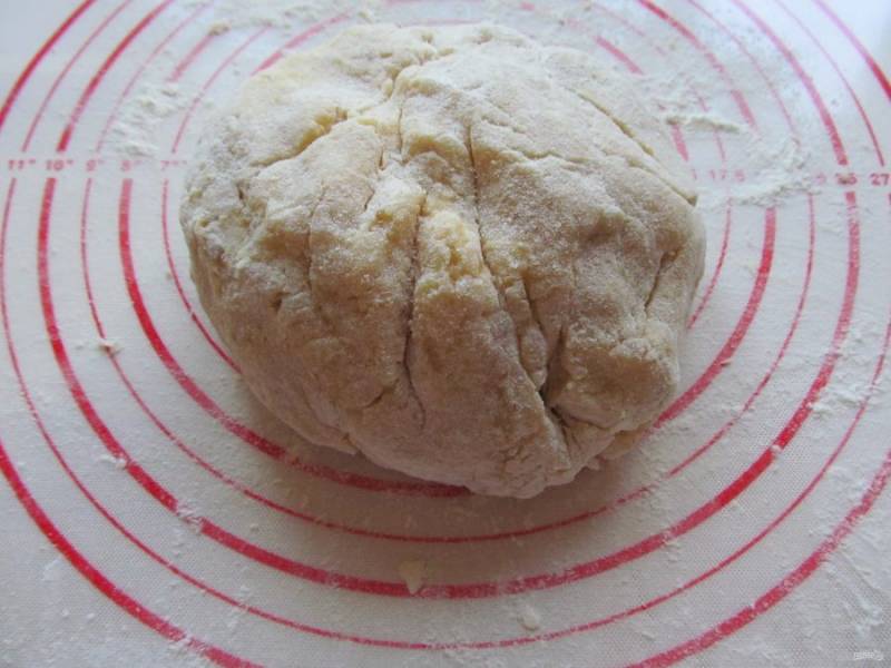 Выложите смесь на посыпанную мукой поверхность и замесите мягкое тесто.