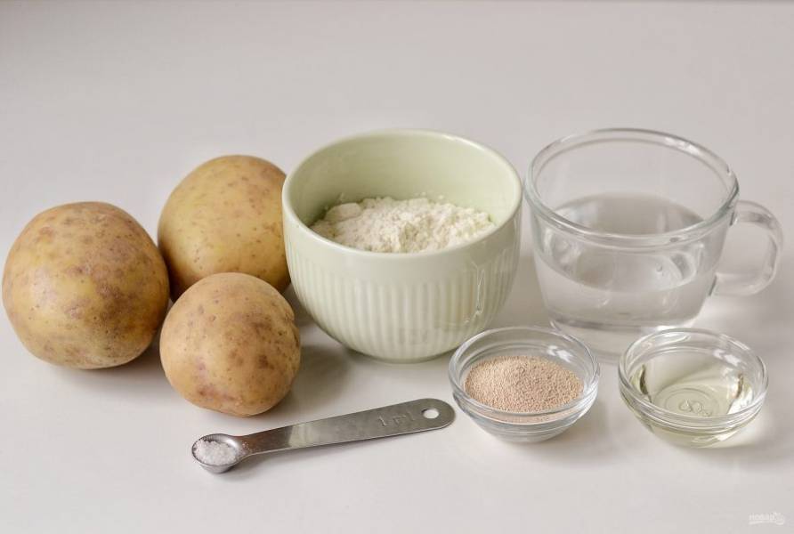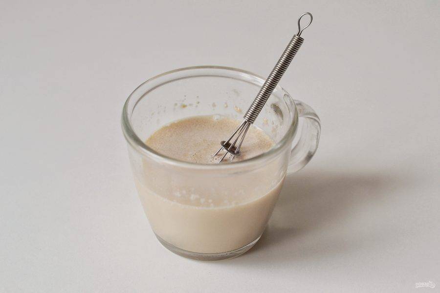 Отделите жидкость, в которой варился картофель. Добавьте дрожжи, перемешайте до полного растворения.
