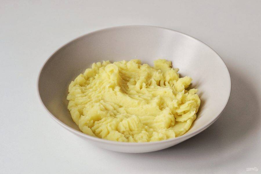 К вареному картофелю добавьте соль, муку и разведенные дрожжи в воде.
