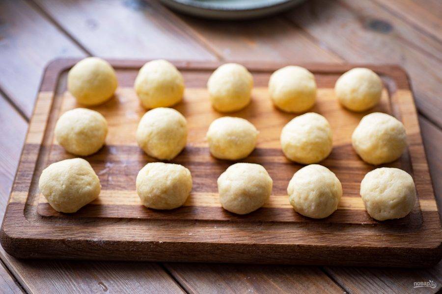 Из всего картофельного теста скатайте шарики, размером с небольшой грецкий орех.