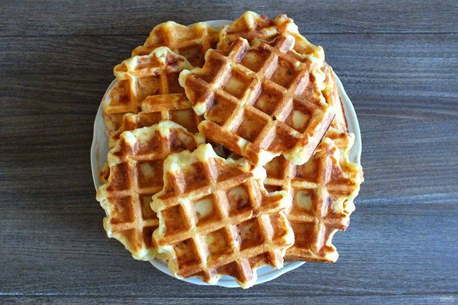 Готовые вафли снимите с панели, переложите на блюдо и подавайте к столу.