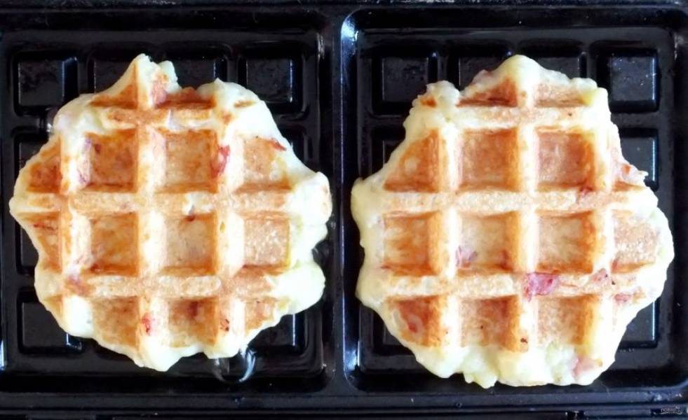 Через 5 минут проверьте готовность вафель. Они должны быть равномерно румяными.