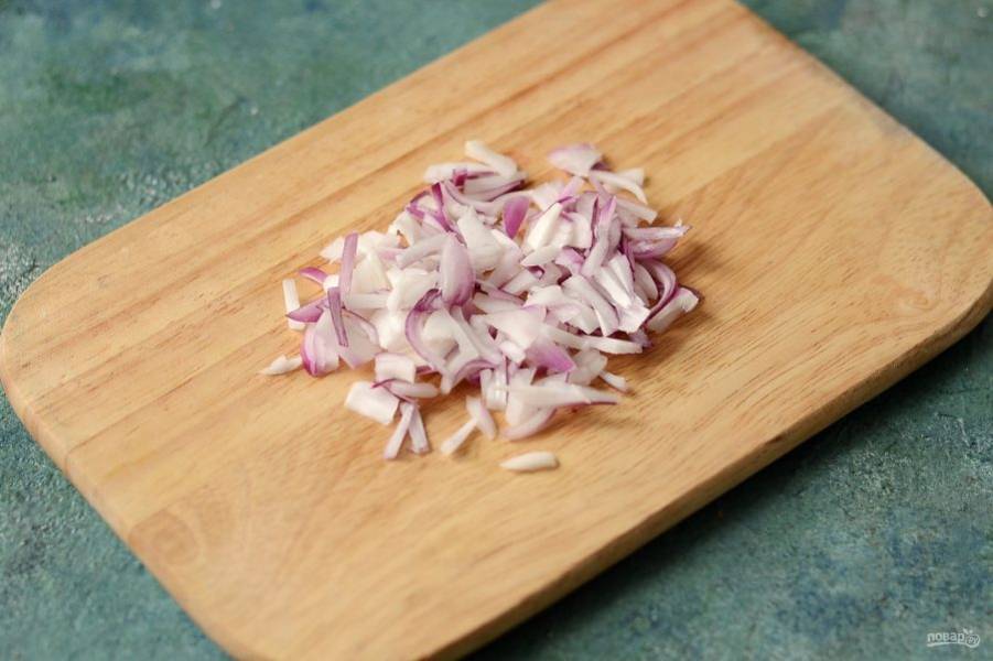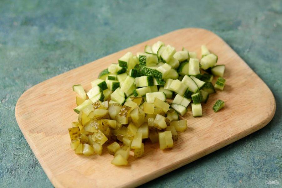 Картофель помойте, очистите от кожуры. Нарежьте кубиками. Отварите в кипящей подсоленной воде 7-10 минут до готовности. Слейте воду.