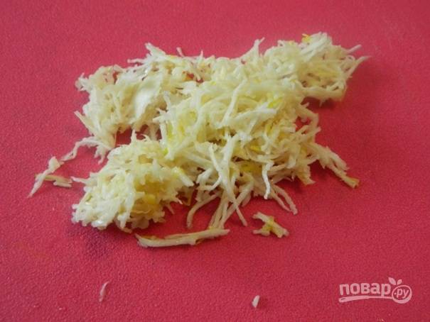 5. Пока картофель жарится, мы почистим и на мелкой терке потрем чеснок.
