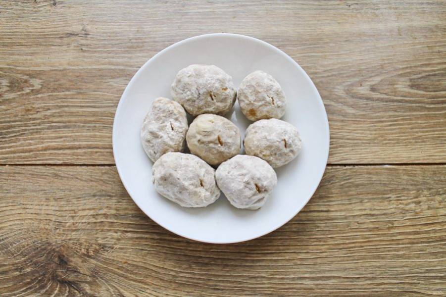 Стряхните с картофеля лишнюю муку и выложите его на блюдо подходящее для микроволновой печи.