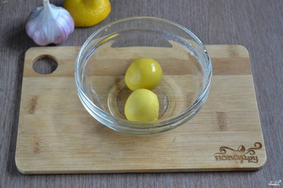 Хорошенько разомните желтки вилкой. Добавьте к ним пропущенный через пресс чеснок.
