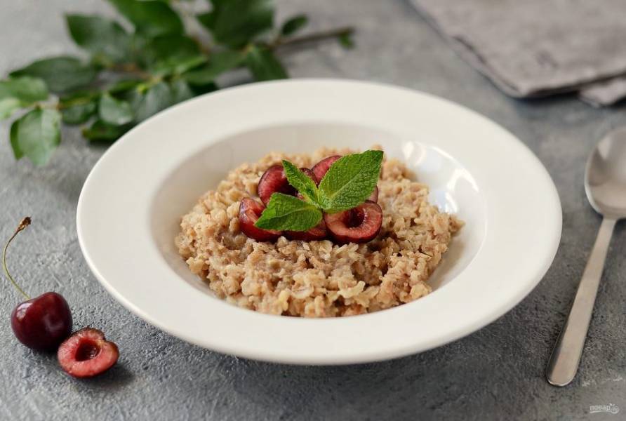 Выложите кашу в тарелку, добавьте ягоды. Приятного вам аппетита!
