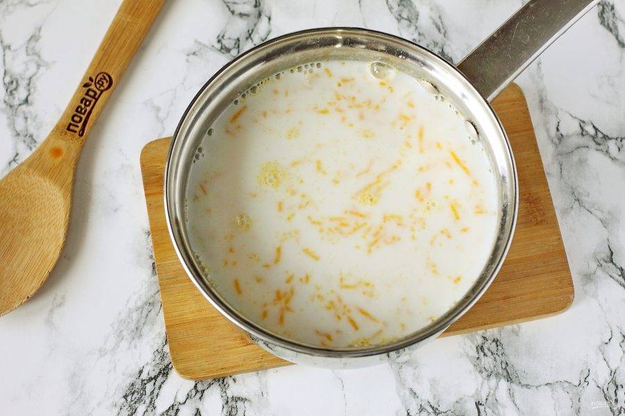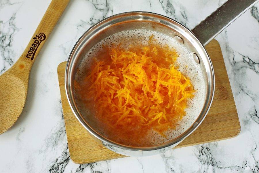 Через 5 минут после закипания добавьте тертую на мелкой терке тыкву.