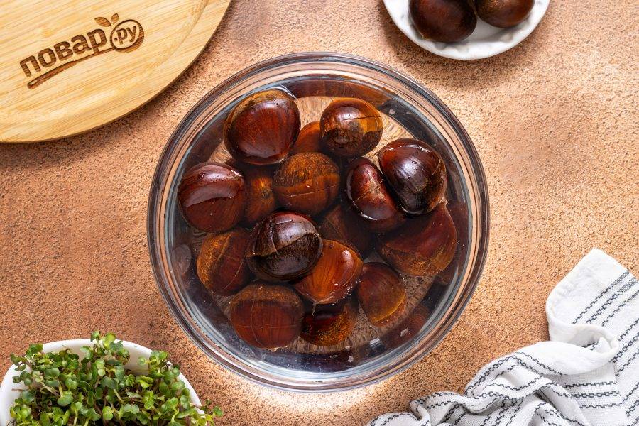 Замочите каштаны в воде на 15-30 минут. Это не обязательный шаг, но так каштаны будут проще очищаться после.