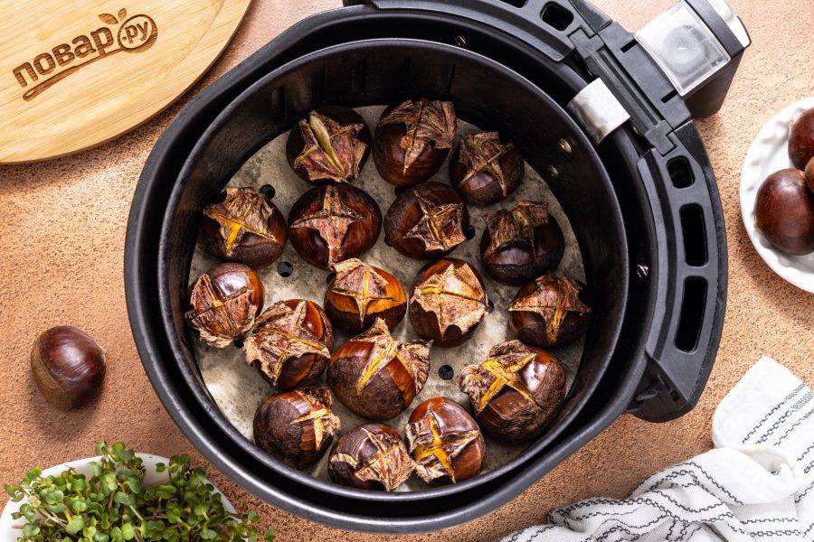 Каштаны в аэрогриле готовы.