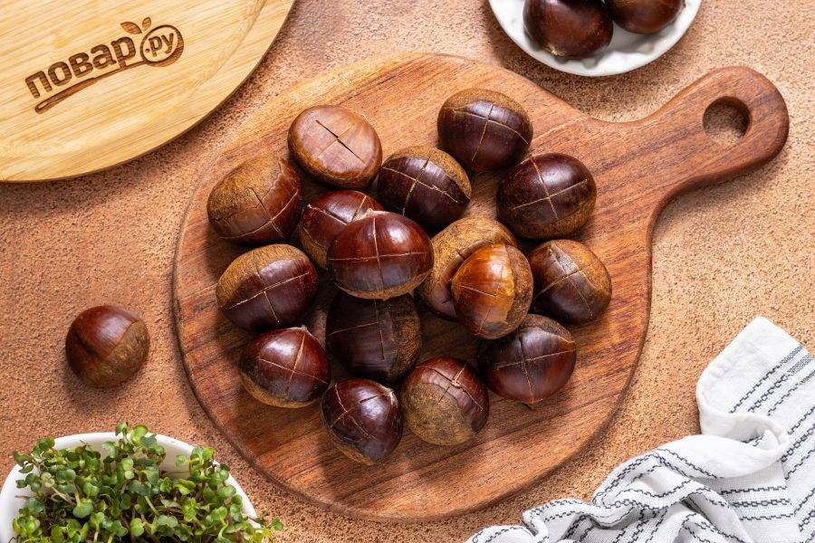 Надрежьте таким образом все каштаны.