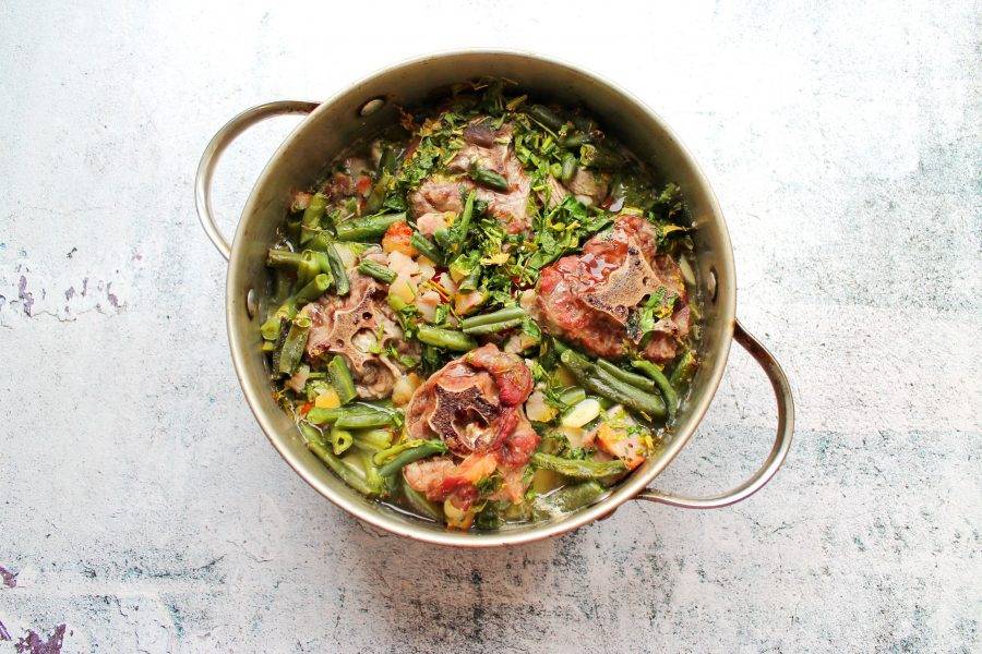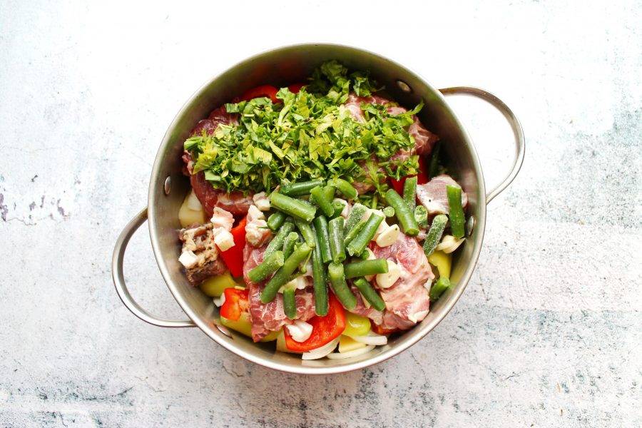 Добавьте в кастрюлю стручковую фасоль.
