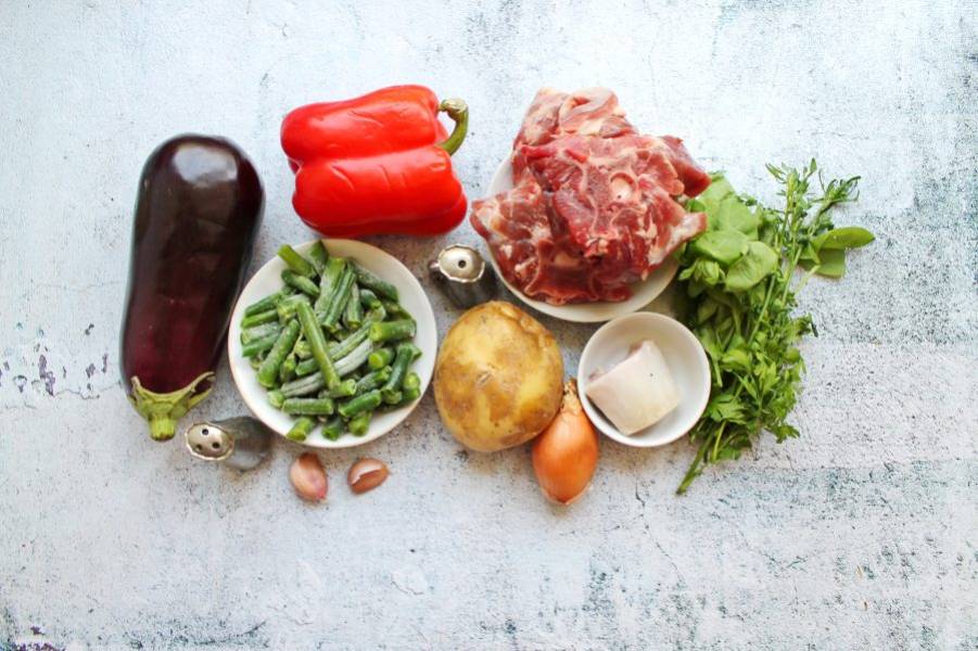 Подготовьте все необходимые ингредиенты для приготовления кчуч из баранины.