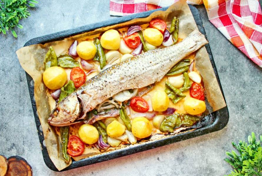 Рыба запеченная в духовке намного полезнее и не такая жирная, как жареная. А если запечь ее целиком и с овощами, отличное блюдо на праздник или семейного обеда без хлопот. Берите рецепт на вооружение!