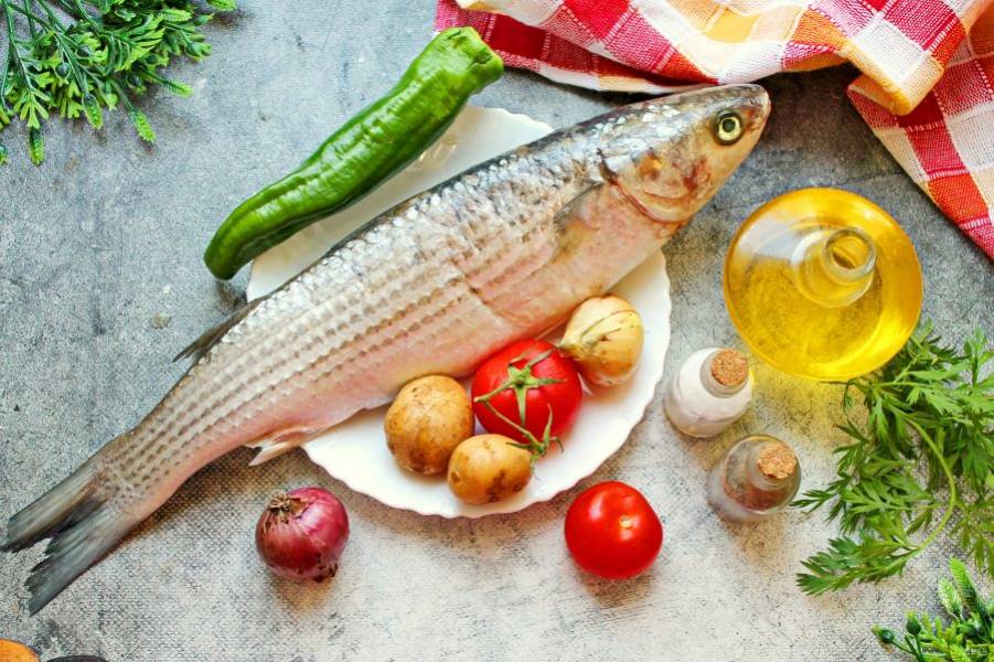 Кефаль почистите от чешуи, удалите внутренности и жабры. Хорошо промойте рыбу в холодной воде и обсушите бумажным полотенцем.