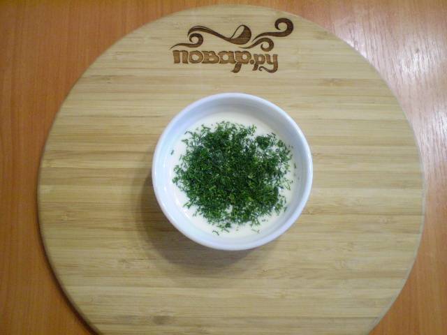 Смешиваем охлажденный кефир с мелко рубленым укропом.