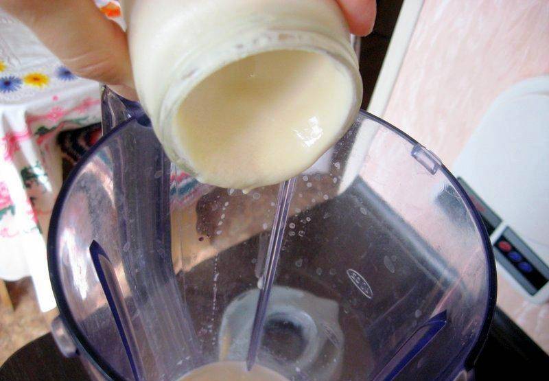 Добавьте кефир и сливки и взбейте в однородную массу.