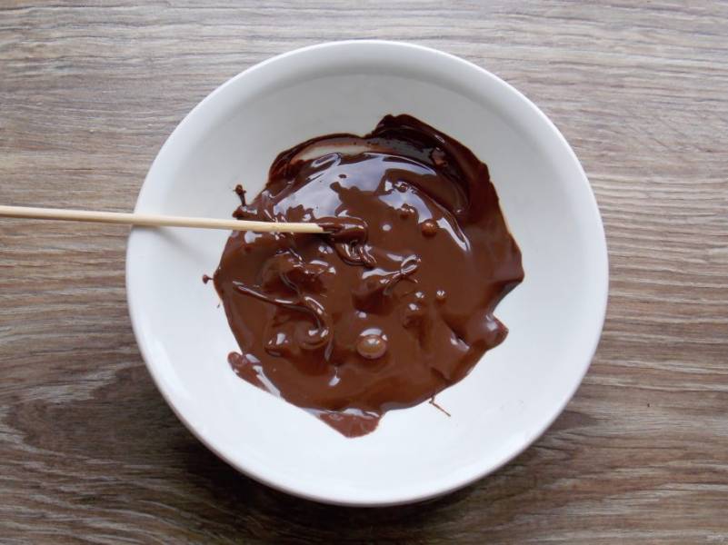 Растопите часть шоколада и окуните в него один конец палочки для кейк попсов.