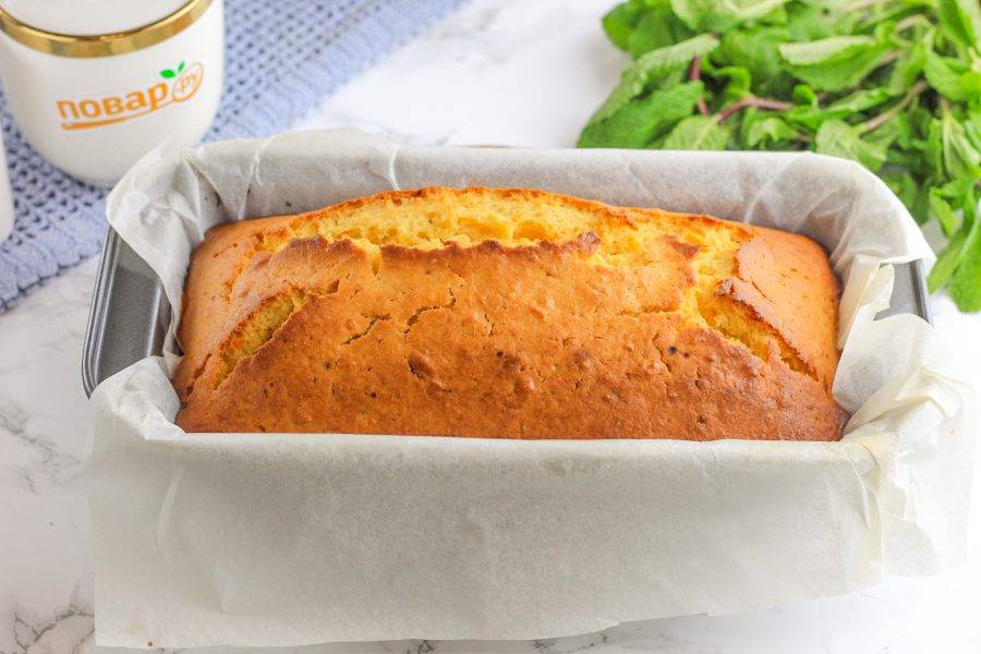Испеките кекс в духовке при 180 градусах примерно 40-45 минут. Если он сверху начнет подгорать, то прикройте его пергаментной бумагой. Затем извлеките форму и остудите кекс на холоде.