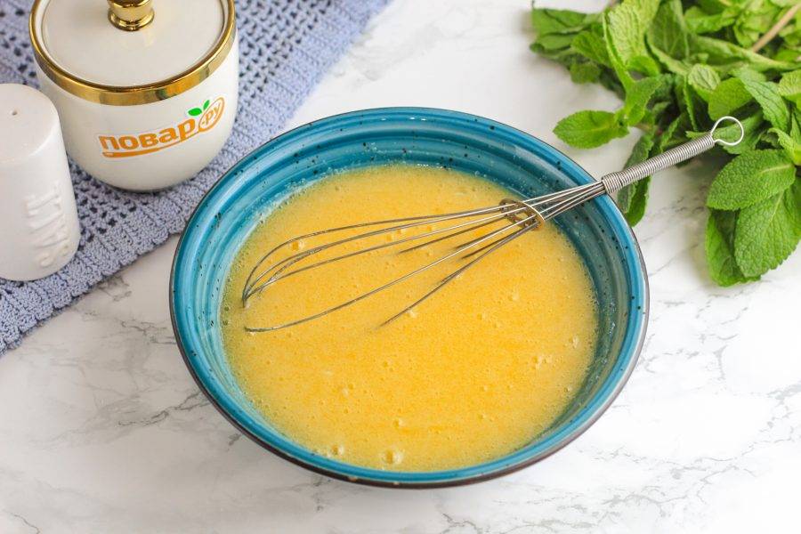 Взбейте куриное яйцо с сахаром и щепоткой соли, влейте апельсиновый сок или кефир любой жирности и снова взбейте.