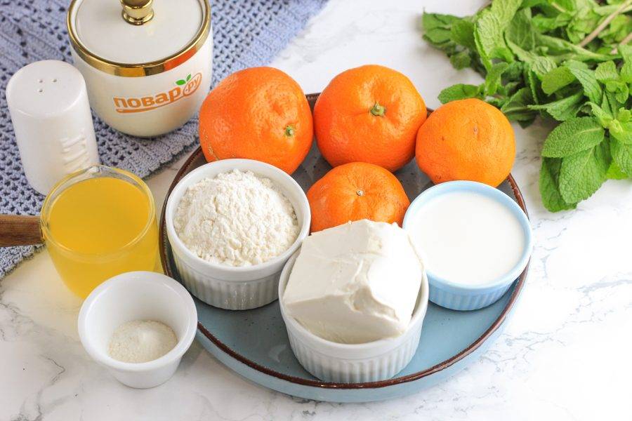 Подготовьте указанные ингредиенты. Мандарины выбирайте с воздушной мягкой кожурой, не плотные.